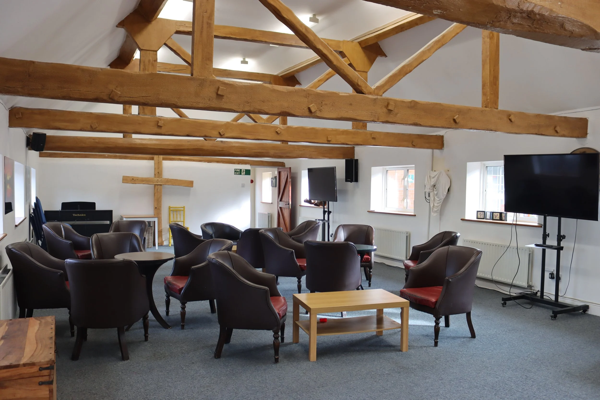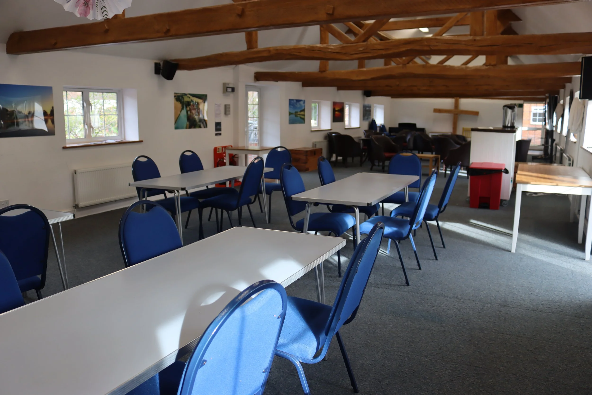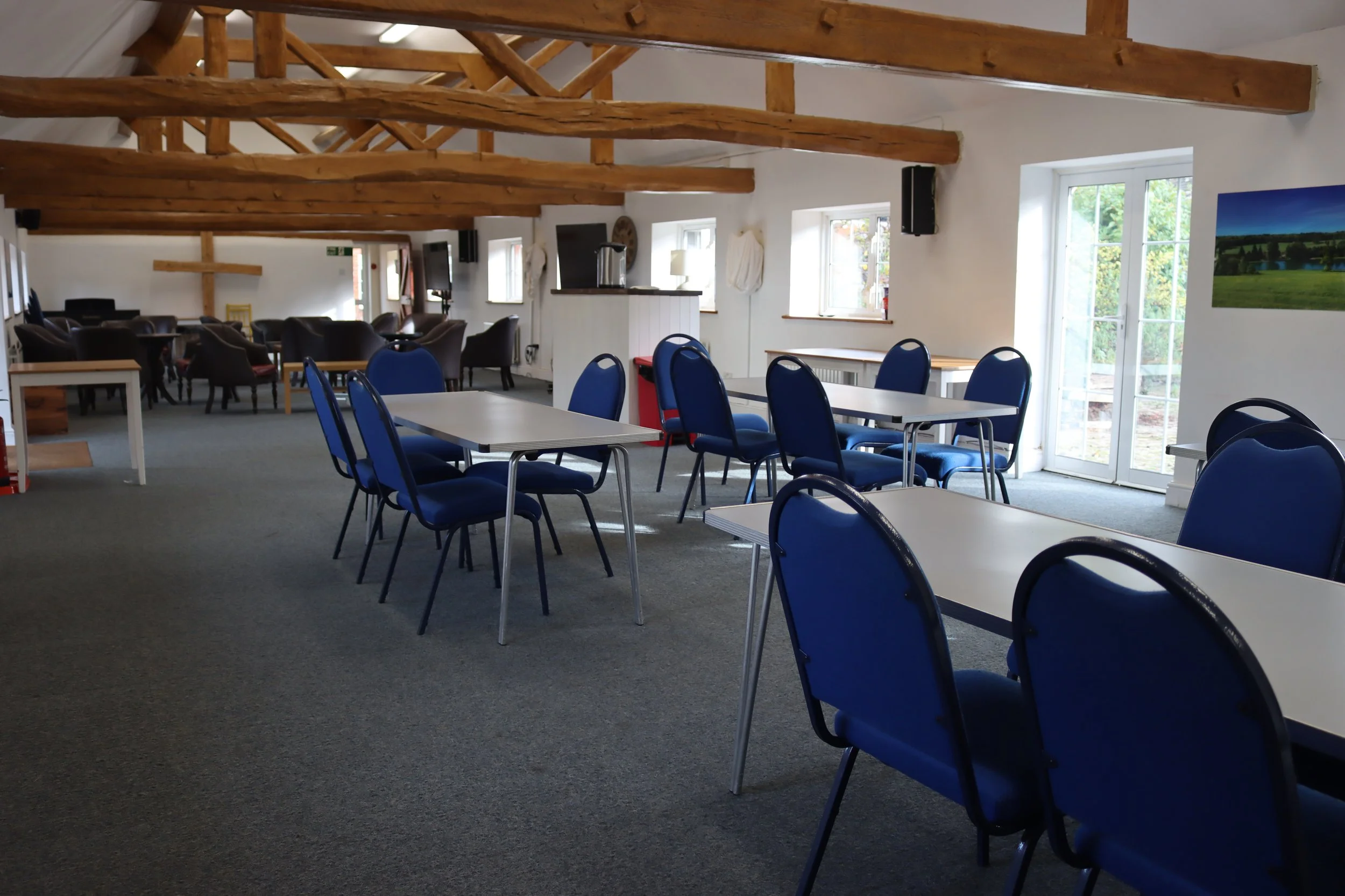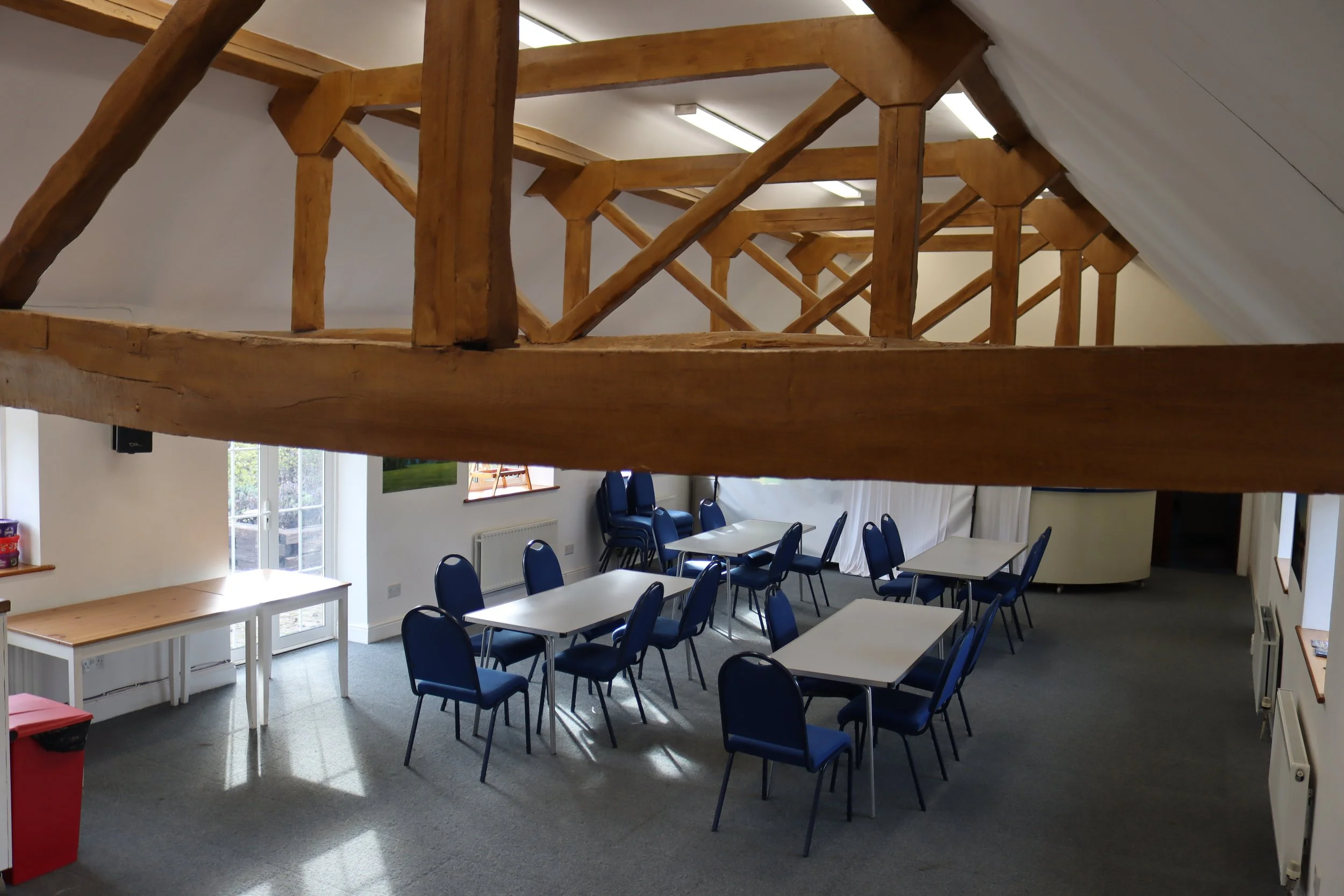 The Dairy is a large room ideal for meetings and conferences. The room is light and airy with carpeted floors, with the original wooden beams on display. It is a versatile room that can be cosy enough for small groups of less than 10, but it is also spacious enough for larger groups of up to 100 people, standing.