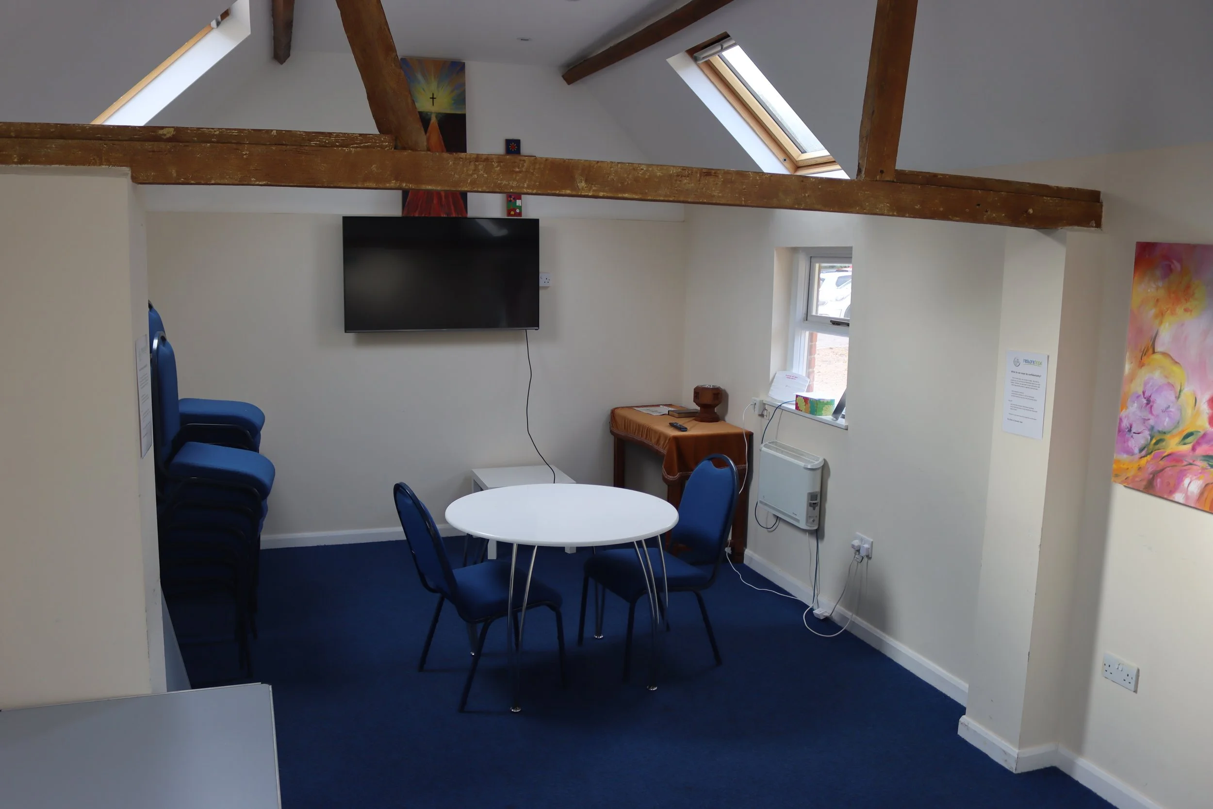 The Garden room is situated opposite the Old Dairy and is a room ideal for smaller groups of up to 20 people seated. The room is light and airy with skylight windows, carpeted floors and the original beam on display.